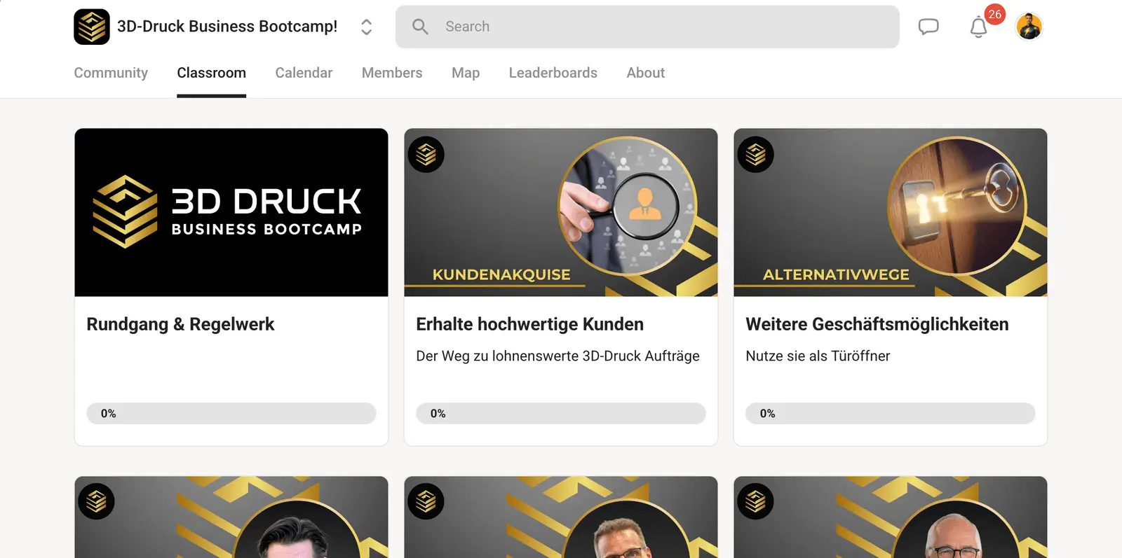 Dann sichere dir einen Platz in dieser starken Community. Du findest Unterstützung und Antworten auf spezielle Fragen, im Chat werden Erfahrungen ausgetauscht und im Classroom gibt's wertvolle Infos, die speziell für dieses Business wichtig sind.