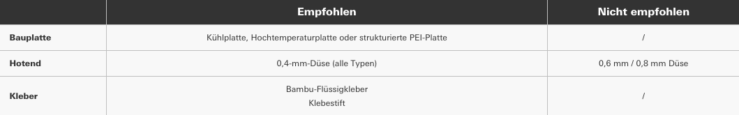 Weitere Informationen zum Vergleich verschiedener Filamente finden Sie im Bambu Filament Guide