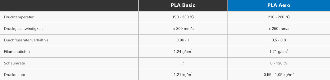 * Beim Drucken von Modellen mit demselben Volumen ist PLA Aero etwa halb so schwer wie PLA Basic.