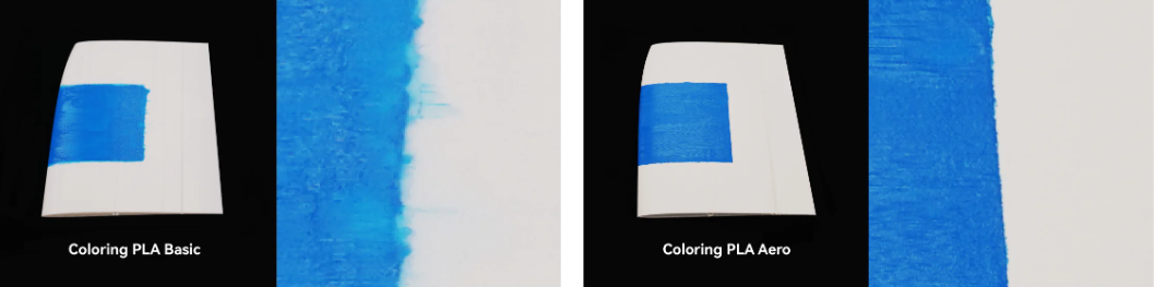 Bambu PLA Aero bietet eine leicht einzufärbende matte Oberflächenstruktur mit besseren Färbeergebnissen im Vergleich zu PLA Basic.