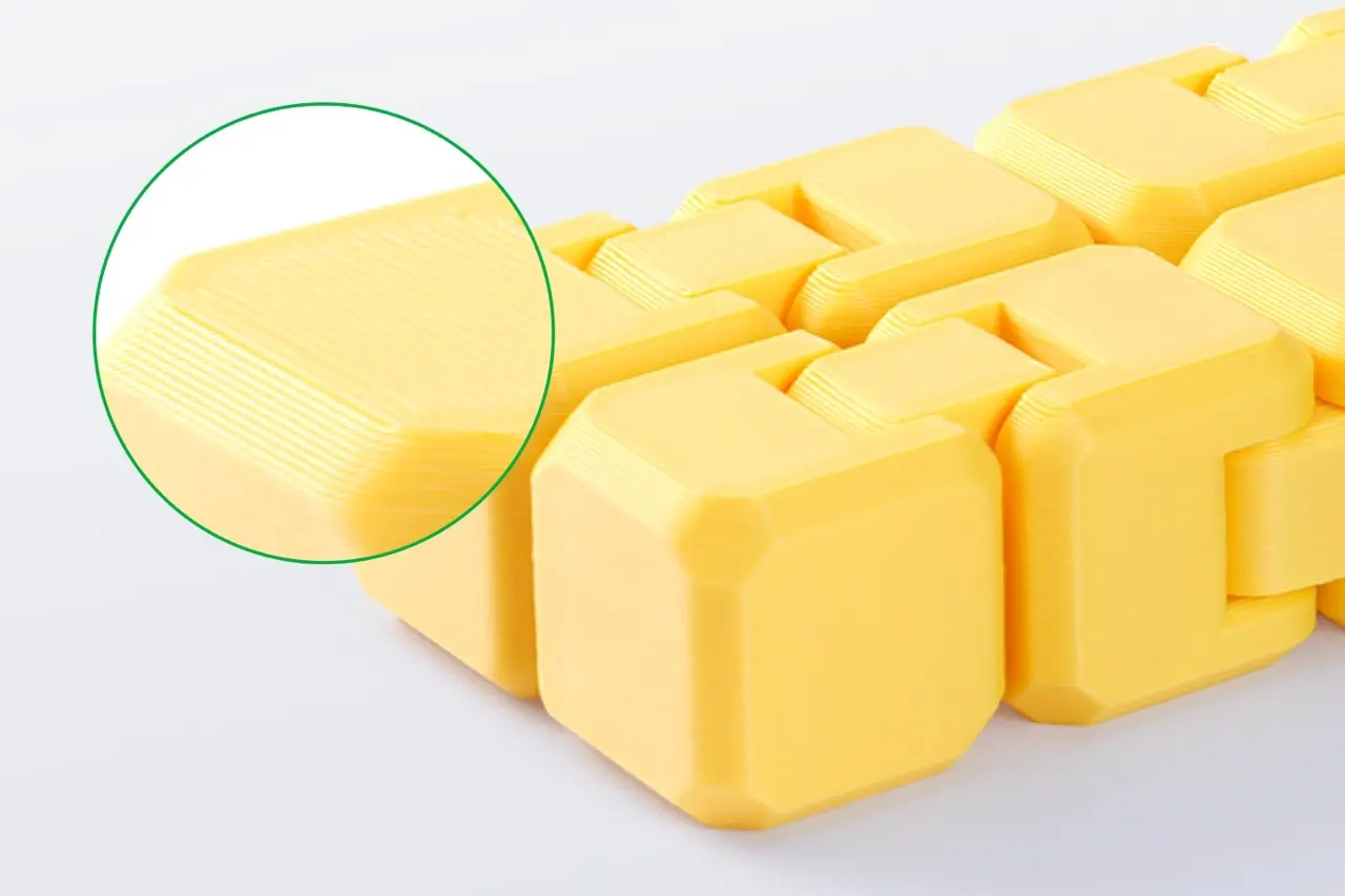 Die glatte Grundbeschichtung verleiht der Unterseite des Druckobjekts eine glatte und ebene Textur, die sich besser in andere Oberflächen einfügt.