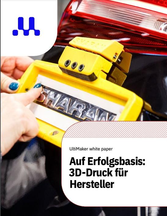 Das Whitepaper von UltiMaker zeigt, wie der 3D-Druck Ihre Abläufe transformieren kann, indem es Ihnen beibringt, wie Sie den 3D-Druck nutzen können, um Vorlaufzeiten und Kosten zu reduzieren, die Effizienz zu steigern, Designs zu optimieren und eine schnellere Markteinführung zu erreichen.