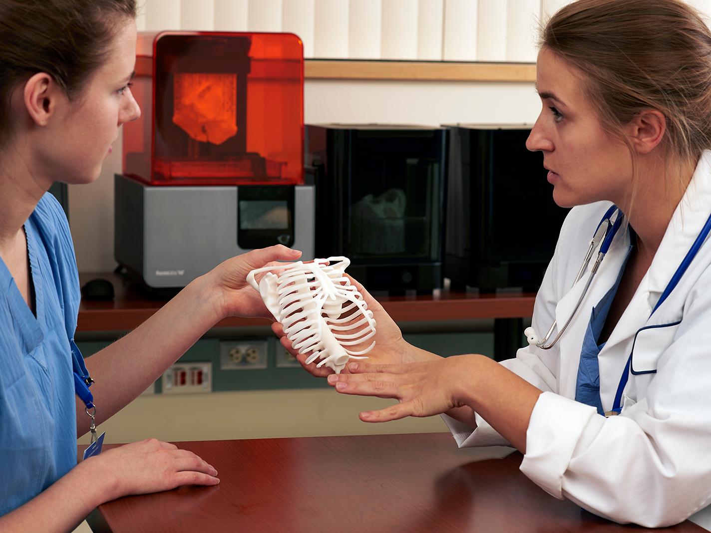 Ein gutes Beispiel ist dabei die Orthopädie. 3D Drucker Ein gutes Beispiel ist dabei die Orthopädie. 3D Drucker ermöglichen es Produkte herzustellen, die genau auf die individuellen Bedürfnisse der Patienten zugeschnitten sind. Gleichzeitig können Kosten für die Produktion gespart werden, da man nach dem Patienten maßgefertigte Größen nicht aufwendig Produzieren muss, sondern mit dem 3D Drucker in Wenigen Schritten fertigen kann.