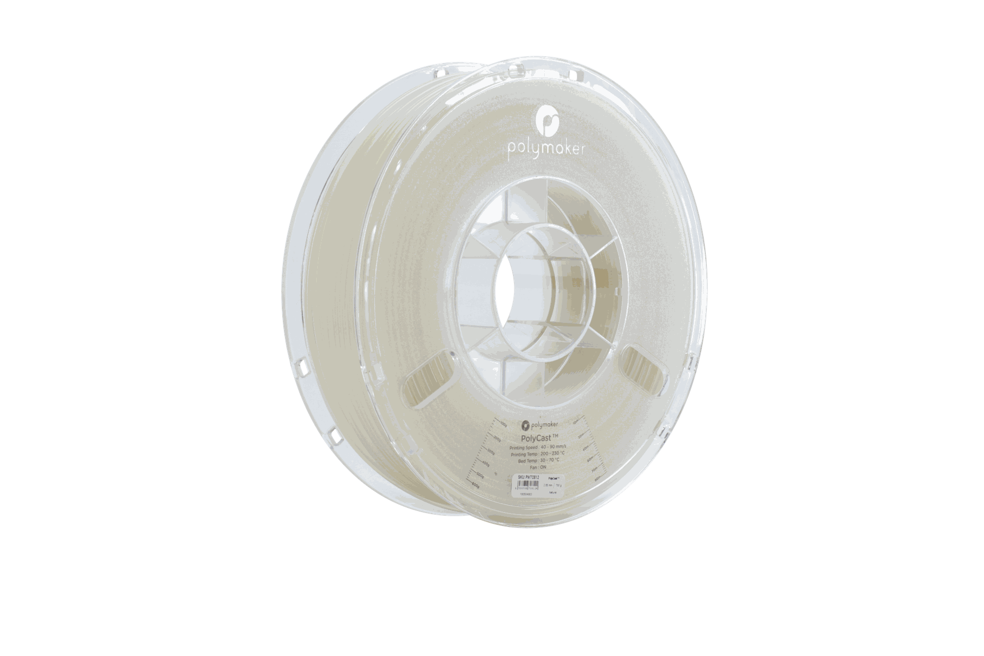 Polymaker PolyCast™ ist ein Filament, das speziell für Feingussanwendungen entwickelt wurde. Es ermöglicht die Verwendung von weit verbreiteten 3D-Drucktechnologien auf Filament-Extrusionsbasis zur Herstellung von Einbettmassenmodellen.