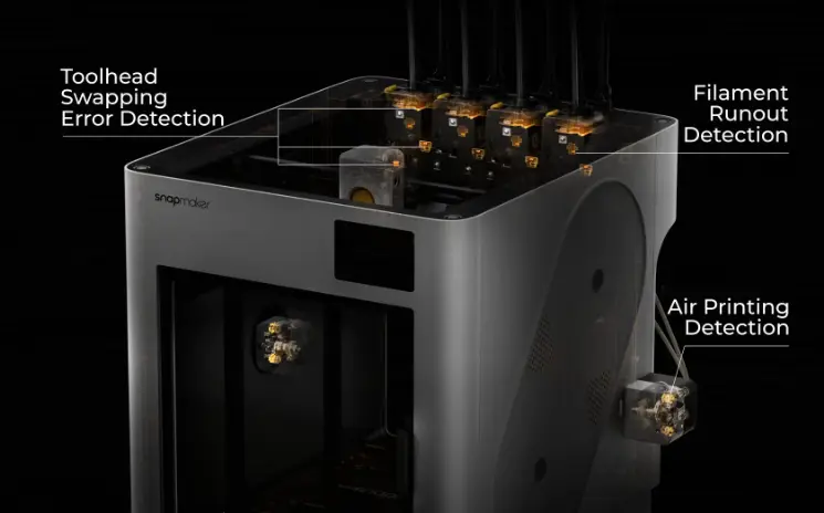 Die integrierte Kammerkamera dient nicht nur für Zeitrafferaufnahmen. Ab einem für Dezember 2025 geplanten OTA-Firmware-Update [5] erkennt die KI Spaghetti und Hindernisse im Arbeitsbereich und warnt Sie in Snapmaker Orca oder der App, sodass Sie keine Zeit und kein Material verschwenden.